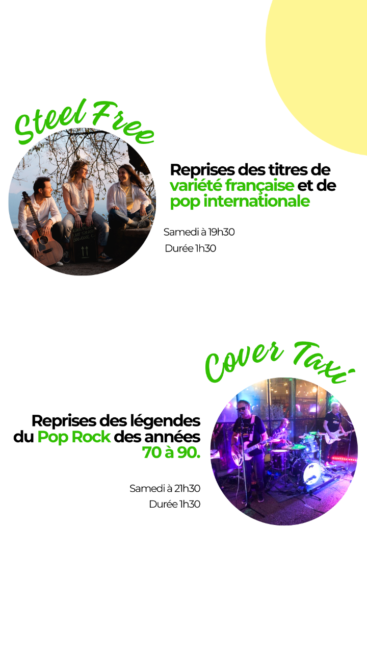 Buvette et restauration sur place : Frites Saucisses, Planches apéro, cocktails, crêpes, Barbes à papa….